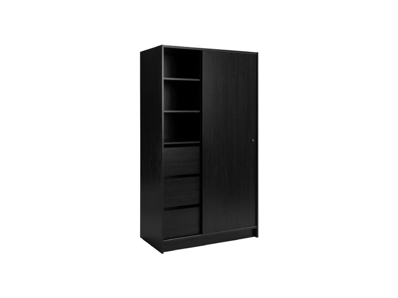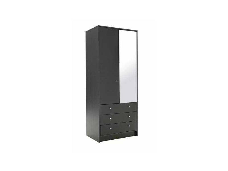 Malibu 2 Dr 3 Drw Mirror Wardrobe - Black Oak Effect